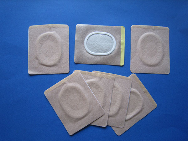 產品結構:無紡布、熱熔膠和離型紙組成。根據客戶需求可以加防滲膜、防滲圈。替代傳統的牛皮紙膏藥底布